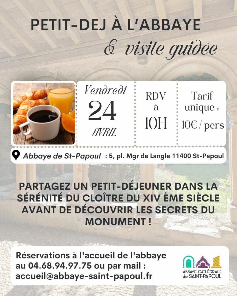 17/04/2026011 Visite guidée petit-déj' - Vendredi 24 avril à 10h Réservation obligatoire au 04 68 94 97 75